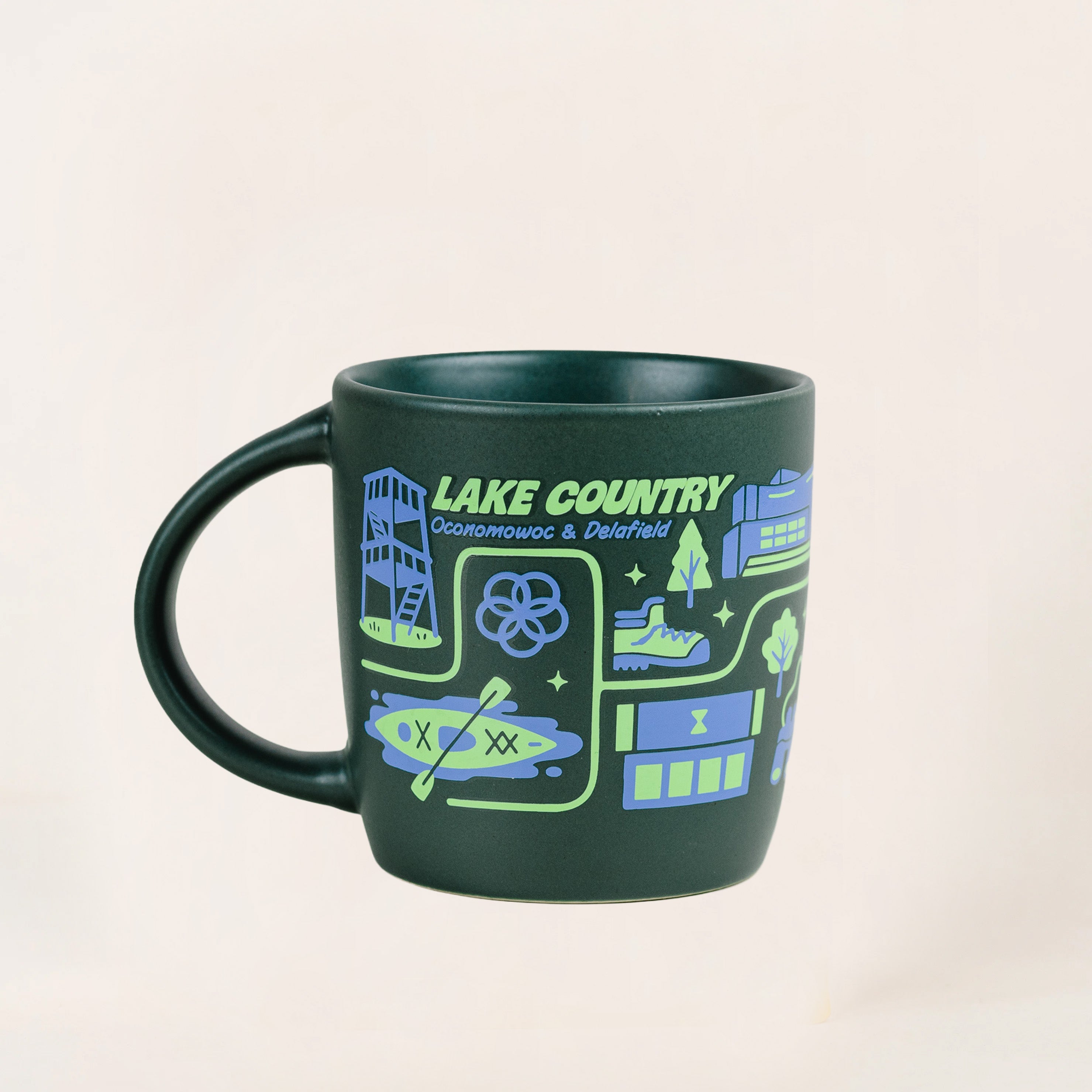 Meet the Lake Country Mug, a ceramic celebration of Wisconsin’s beloved chain-of-lakes lifestyle, where weekends start on the dock, evenings end by the fire, and every day includes a little time on the water. Designed with the natural beauty of Lake Country living in mind, this mug brings that relaxed, outdoorsy spirit into your daily routine.