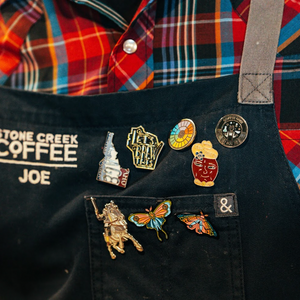 Show off your Stone Creek style with our collection of pins, patches, and ornaments made for people who take their coffee—and their self-expression—seriously. From a classic coffee enamel pin to embroidered patches inspired by specialty coffee culture, these small accessories make a big statement.